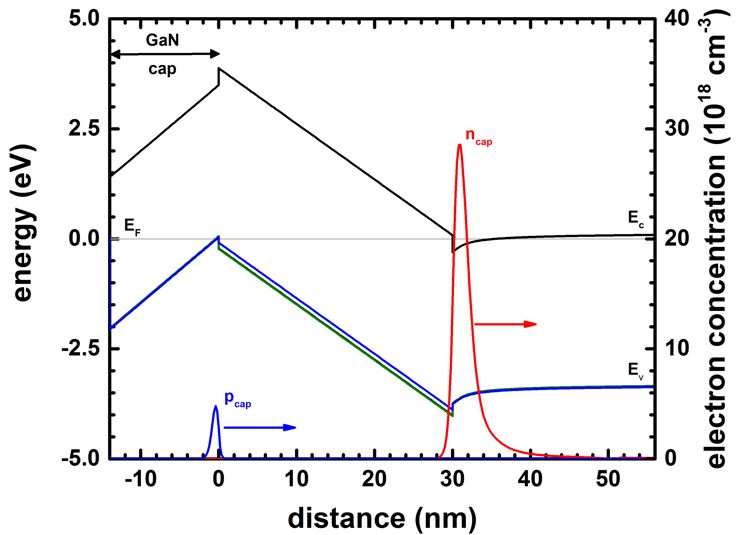 When introducing a GaN cap layer, the density of the 2DEG is reduced.
