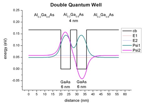 - Our symmetric double quantum well consists of two 6 nm GaAs quantum wells,