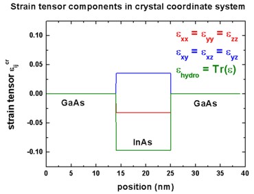 - As GaAs is unstrained, all strain tensor components are zero in GaAs.