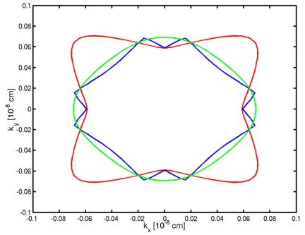 It shows the equienergy lines of the lowest lying light hole, heavy hole and split-off hole subbands