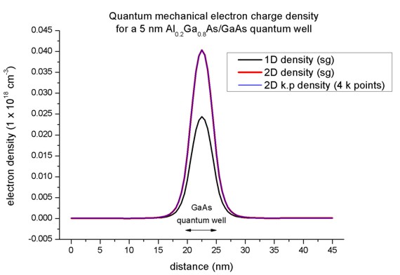 Here, the 2D k.p and single-band densities are in perfect agreement.