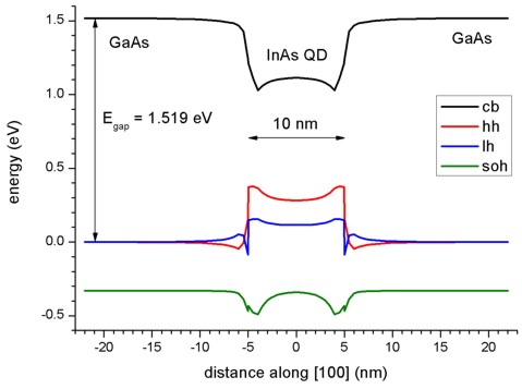 ... to be continued. Please use the nextnano++ software for Quantum Dots (3DInAsGaAsQDPyramid_PryorPRB1998_10nm_nnp.in).